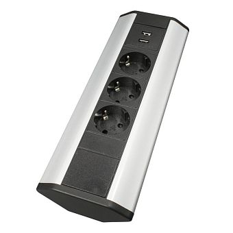 Блок розеток накладной угловой 16А, 3 поста, 2USB, серебр., провод 1,8м с вилкой