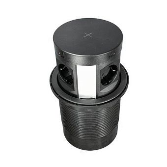 Блок розеток встр. круг. d120мм, 16А, 4 пост, черн., 2USB, 2Type-C, беспр. зарядка, провод 2м