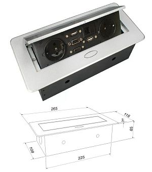 Блок розеток выдв. прямоуг. SMART Office 2 роз., 2xUSB2.0, 1xLAN; 1xHDMI, 1xVGA, 266х130х68мм