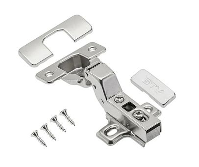 Петля GTV PRESTIGE Clip-On полунакладная 102°, с монт. планкой H0, декор. накладки, саморезы, с доводчиком