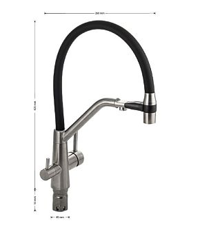 Смеситель д/кухни С-обр. гусак МАГНУС графит,с двойным выпуском воды, нерж.сталь304, арт 9121