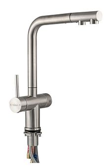 Смеситель д/кухни Г-обр. МАГНУС с краном питьевой воды. вытяжной из нерж. стали 304,САТИН, 91135