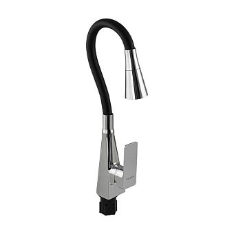 Смеситель д/кухни с гибким черным изливом FABIA корпус конус, цвет ХРОМ арт.4112