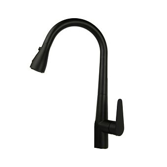 Смеситель д/кухни МАГНУС Г-образный излив вытяжной, корпус из латуни, черный