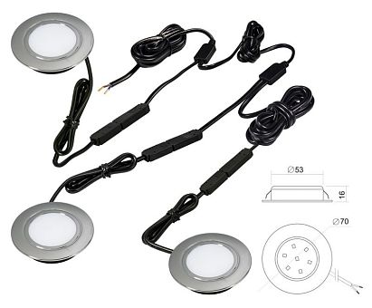 Комплект светильников встр. (LED) 3 х Polus 4Вт, 220В, 4000K, хром, провод-шлейф