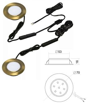 Комплект светильников встр. (LED) 2 х Polus 4Вт, 220В, 3000K, ант.бронза, провод-шлейф
