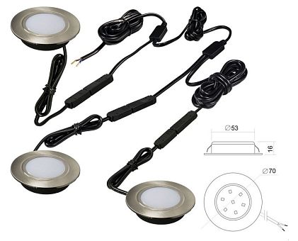 Комплект светильников встр. (LED) 3 х Polus 4Вт, 220В, 4000K, сатин никель, провод-шлейф