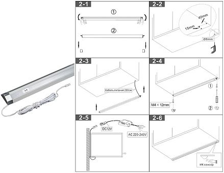 Светильник (LED) Line 1E-305 с выкл. 4Вт, 305х23х33мм, 4000К, 220В, соед. каб., сет. каб., клипсы