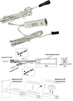 ИК-выключатель (диммер) на взмах руки SIR-5DL 5A для профиля под пайку DC12-24В, 55х10мм