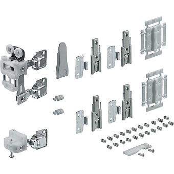 Комплект фурнитуры WingLine L от Hettich представляет собой надежную систему для подвешивания дверей весом до 25 кг. Предназначен для створок шириной 600 мм и выполнен в правостороннем исполнении (R). Комплект фурнитуры WingLine L на 1 дверь без нижней направляющей. WingLine применяется только в комбинации с Pull to move и Push to move. Состав комплекта: