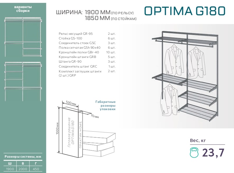 Рельс несущий ПРАКТИК Home GR-95 белый – 2 шт.