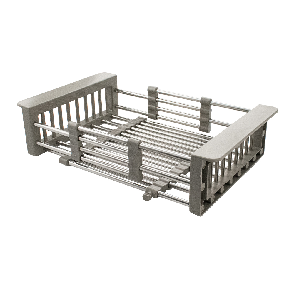 Корзина на кухонную мойку для сушки столовых приборов, овощей и фруктов. Габаритные размеры: ширина 225 мм, длина от 320 до 470 мм.