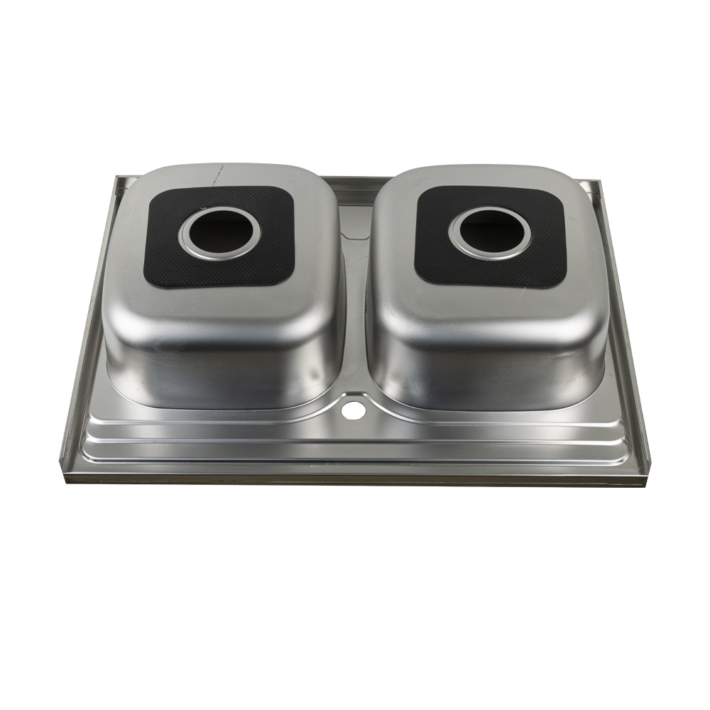 Накладная мойка FABIA с двумя чашами из нержавеющей стали отличный вариант для кухни, она прослужит многие годы. Классическая форма и хромированный цвет гармонично впишутся в любой интерьер и никогда не выйдут из моды. Оптимальный размер позволяет свободно мыть посуду, без страха её разбить. Мойка устанавливается на тумбочку. Практичная площадка, расположенная по центру, даёт возможность вмонтировать любую понравившуюся модель смесителя. В комплекте двойной сифон с переливом. Габаритные размеры: ширина 600 мм, длина 800 мм, глубина 160 мм, толщина стали 0,6 мм. Вес - 4,900 кг, объём - 0,03921 м3.