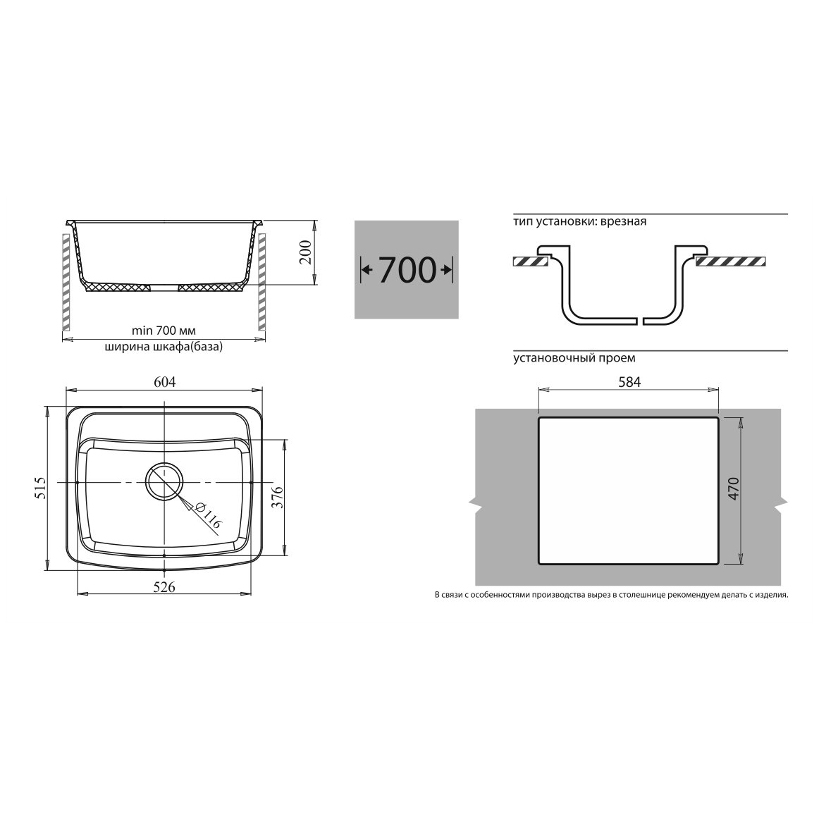 Общий размер мойки