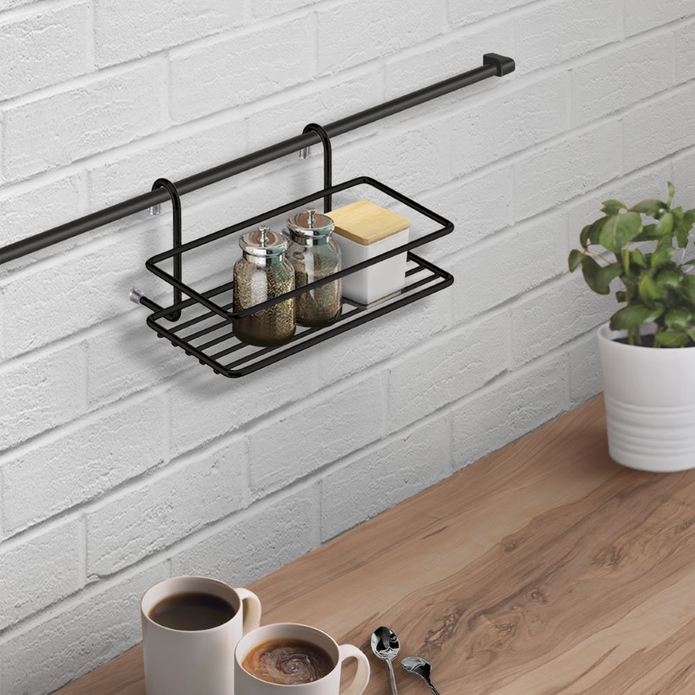 Полка позволяет использовать пространство на стене, освобождая рабочую поверхность. Полка небольшого размера, для самых нужных мелочей. Полка выполнена из нержавеющей стали. Легко и надежно вешается на трубу рейлинга.