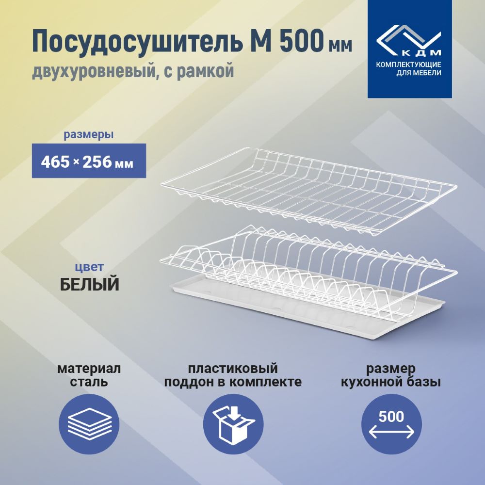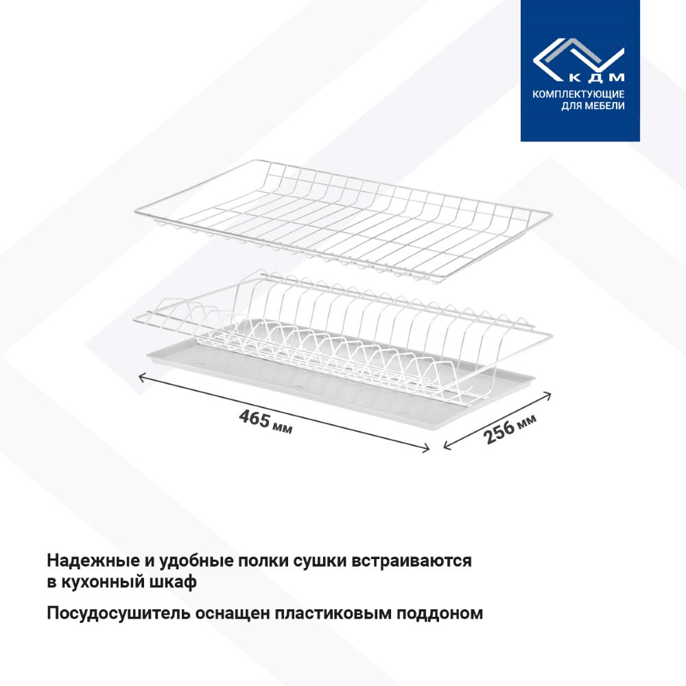 Надежные и удобные полки сушки встраиваются в кухонный шкаф. В комплекте пластиковый поддон.