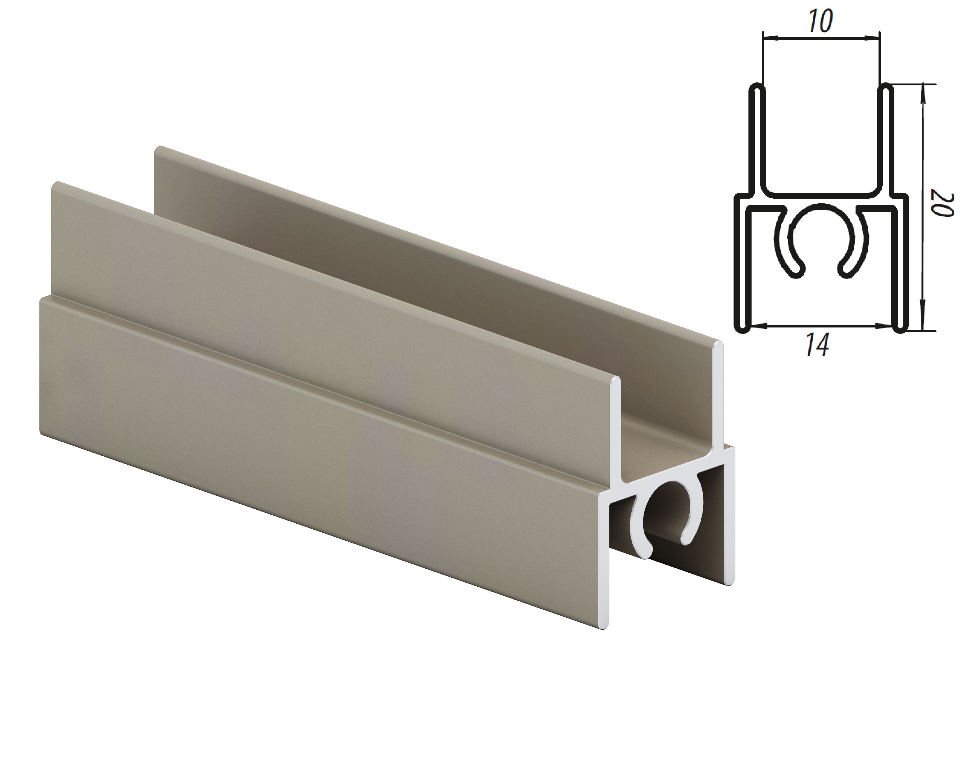 Горизонтальный верхний профиль монтируется на торец верхнего среза двери раздвижной системы дверей для шкафа-купе. Эта деталь также придает дверному полотну эстетичный вид и служит в качестве декоративной планки.