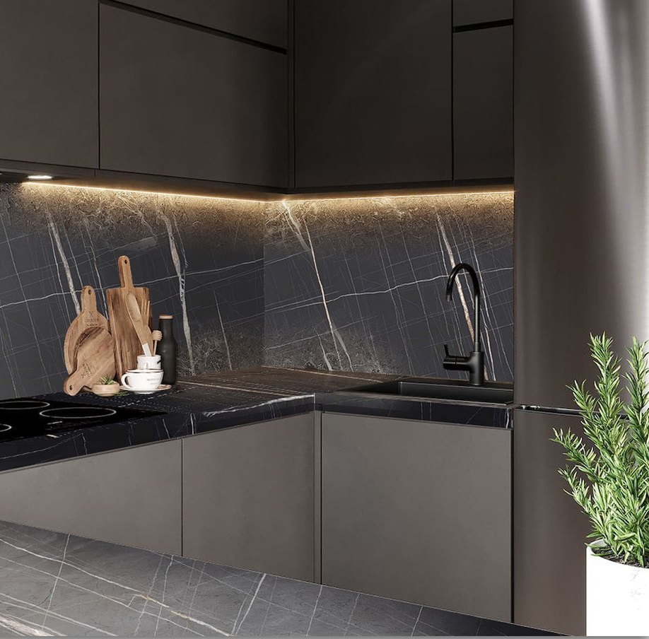 Столешница 3050x600x40 1U 3074 Черный тунис //1 обладает влагостойким слоем, который обеспечивает надежную защиту от разбухания столешницы при частом контакте с водой, благодаря качественной герметизации. Столешницы устойчивы к различным бытовым химиям, чернилам, пищевым кислотам и ультрафиолетовому излучению, что сохраняет их внешний вид и функциональность. Также они обладают высокой стойкостью к механическим повреждениям, таким как царапины и сколы и выдерживают высокие температуры без образования следов от горячей посуды.