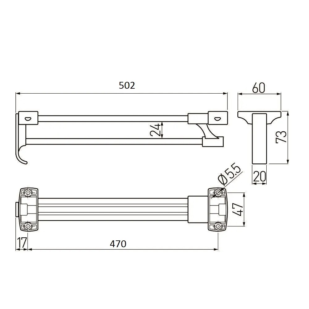 Данный товар имеет габаритный размер 502мм в задвинутом состоянии, а длина выдвижной части составляет470 мм. Это делает вешалку GTV особенно удобной для использования в небольших шкафах, так как она занимает минимальное пространство, когда не используется.